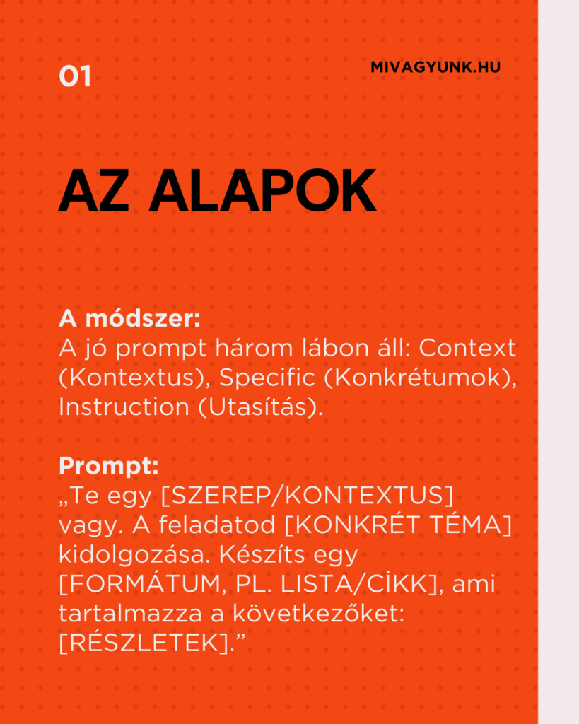 A promptolásnak megvan a maga logikája, sőt, mondhatni nyelvtana. Ha megtanulod ezeket a szerkezeteket – a szerepjátéktól a gondolatmenet láncig –, a MI hirtelen egy közepes asszisztensből zseniális stratégiai partnerré lép elő.