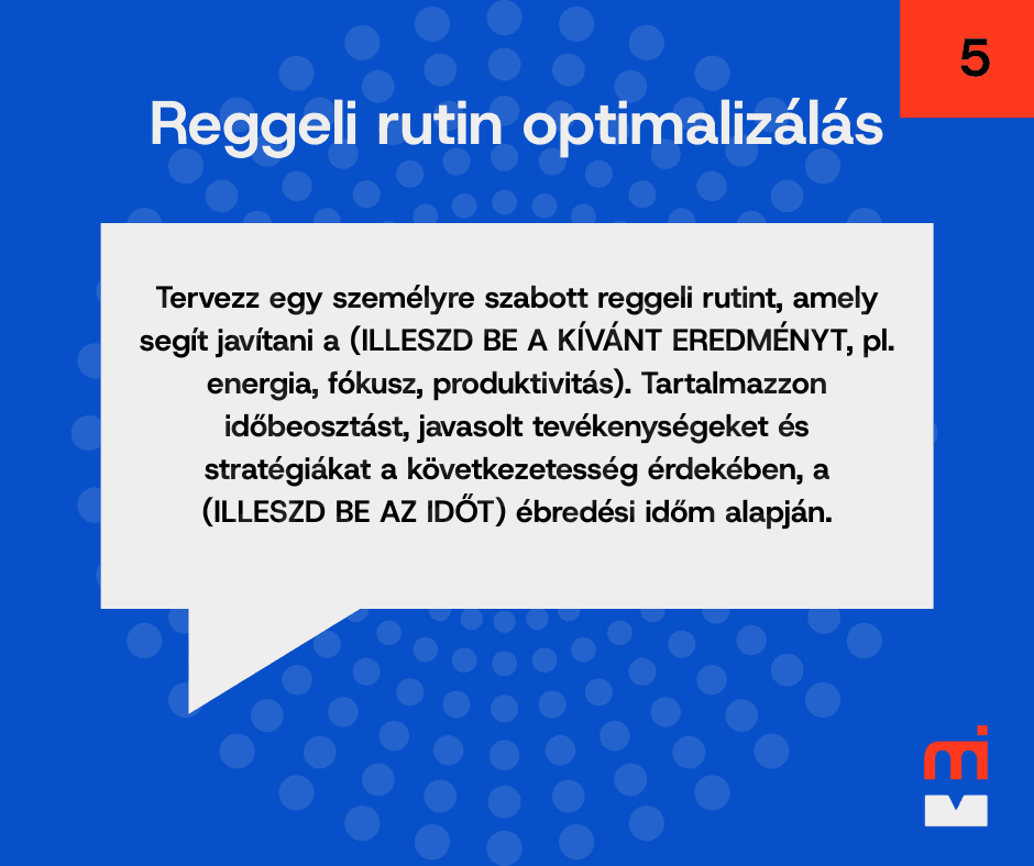 Ezekhez a parancsokhoz (promptokhoz) nincs szükség semmilyen technikai tudásra vagy titkos trükkre. Valójában ezek egyszerű, logikusan felépített mondatok, amelyeket bárki azonnal használhat. A lényeg mindössze annyi, hogy pontosan fogalmazunk. Így a ChatGPT nem általánosságokat mond majd, hanem konkrét segítséget nyújt a te helyzetedre szabva. Legyen szó egy új szokás rögzítéséről, egy nehéz döntés ellenőrzéséről, vagy a reggeli rutinod finomhangolásáról, a folyamat végtelenül egyszerű! Másold be a szöveget, és hagyd, hogy az MI új szemszögből mutassa meg ki vagy, és ki lehetsz.