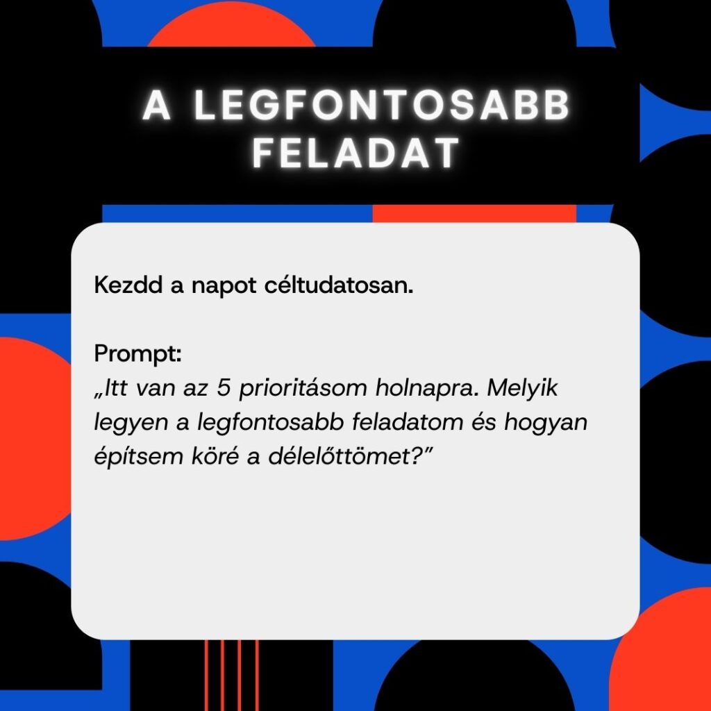 Beérsz a munkahelyre és azonnal elönt a káosz. Az e-mailek záporoznak, a telefon nem hagyja abba a csörgést, a kollégák pedig percenként szakítanak félbe. Délutánra már nem dolgozol, csak túlélsz. Próbálod utolérni magad, de az árral szemben úszol. A mesterséges intelligencia nem tudja megállítani az időt, de abban segíthet, hogy rendet vágj a zűrzavarban. Tekints rá úgy, mint egy szigorú, de igazságos titkárra. Rendszerezi a káoszt, fontossági sorrendet állít fel és megmondja, mikor kell nemet mondanod.