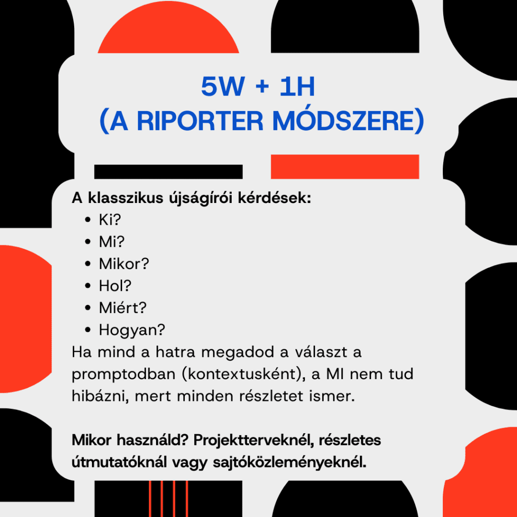 Ennek most vége. A titok nyitja a struktúra. A nagy nyelvi modellek imádják a rendszert. Ha egy világos képlet (framework) szerint adod ki az utasítást, az eredmény minősége ugrásszerűen javul. Olyan ez, mint egy recept: ha pontosak az összetevők, a végeredmény is tökéletes lesz.