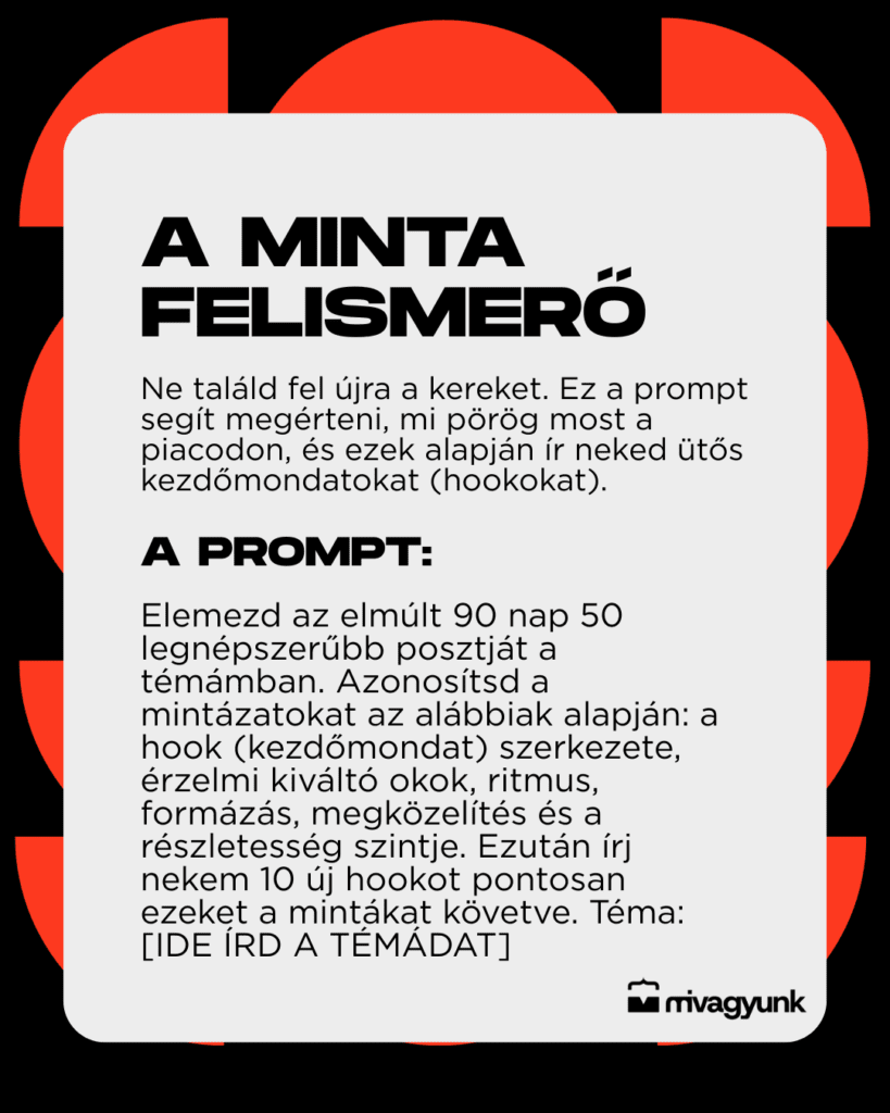 Mindenki a virális tartalmak titkát keresi. A rossz hír: nincs titkos gomb. A jó hír: van helyette pszichológia és struktúra, amit az MI segítségével percek alatt a saját hasznodra fordíthatsz.