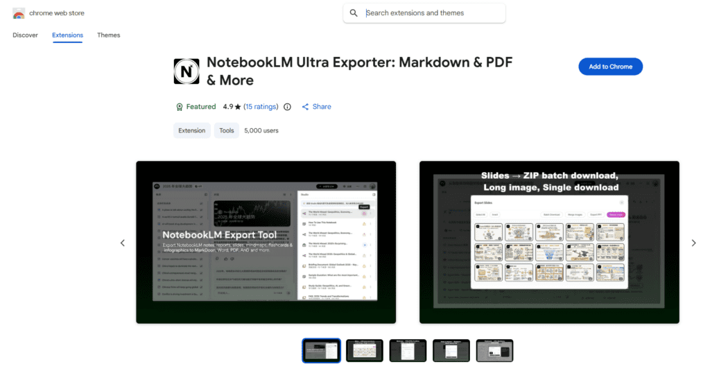 A tudás akkor ér valamit, ha meg is tudjuk osztani vagy tovább tudunk vele dolgozni. A Notebook LM Ultra Exporter segítségével a generált riportokat, infografikákat vagy chat-előzményeket pillanatok alatt kimentheted Markdown, Word vagy PDF formátumban. Különösen hasznos a prezentációk exportálásánál, ahol kiválaszthatod, mely diákat szeretnéd megtartani, és akár videóként is elmentheted őket.