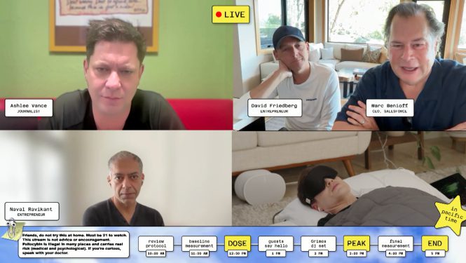 A legújabb húzása egy élő közvetítés volt. Itt egy jelentős, 5,24 gramm adag pszilocibin gombát fogyasztott el. A célja elvileg a tudomány szolgálata volt, de a műsormarketing sem volt utolsó. A háttérben ugyanis saját cégei, a Kernel és a Blueprint termékei sorakoztak.