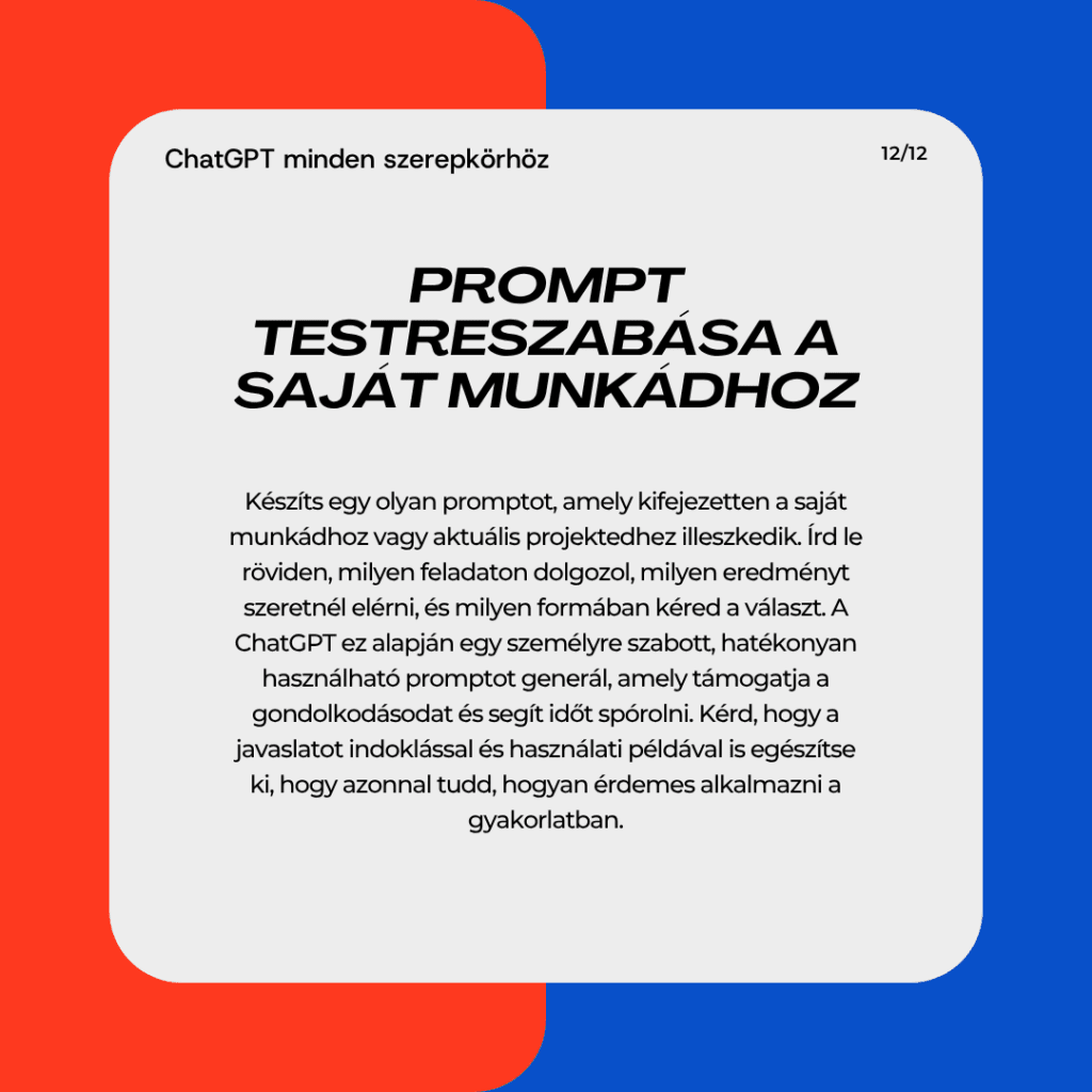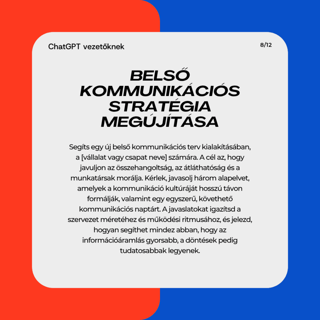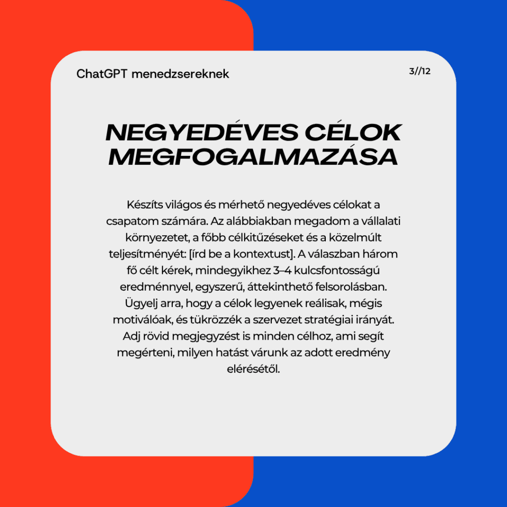 A ChatGPT lesz az a kolléga, akire mostantól, ebben a helyzetben számíthatsz. Visszaad neked időt, fókuszt, teret. Elvégzi a rutinfeladatokat, amik tőled órákat visznek el, és közben képes olyan mélységű kutatásokra is, amikre egy embernek napok vagy hetek kellenének. Pillanatok alatt összegyűjti az adatokat, értelmezi, rendszerezi, és világos, átlátható választ ad.