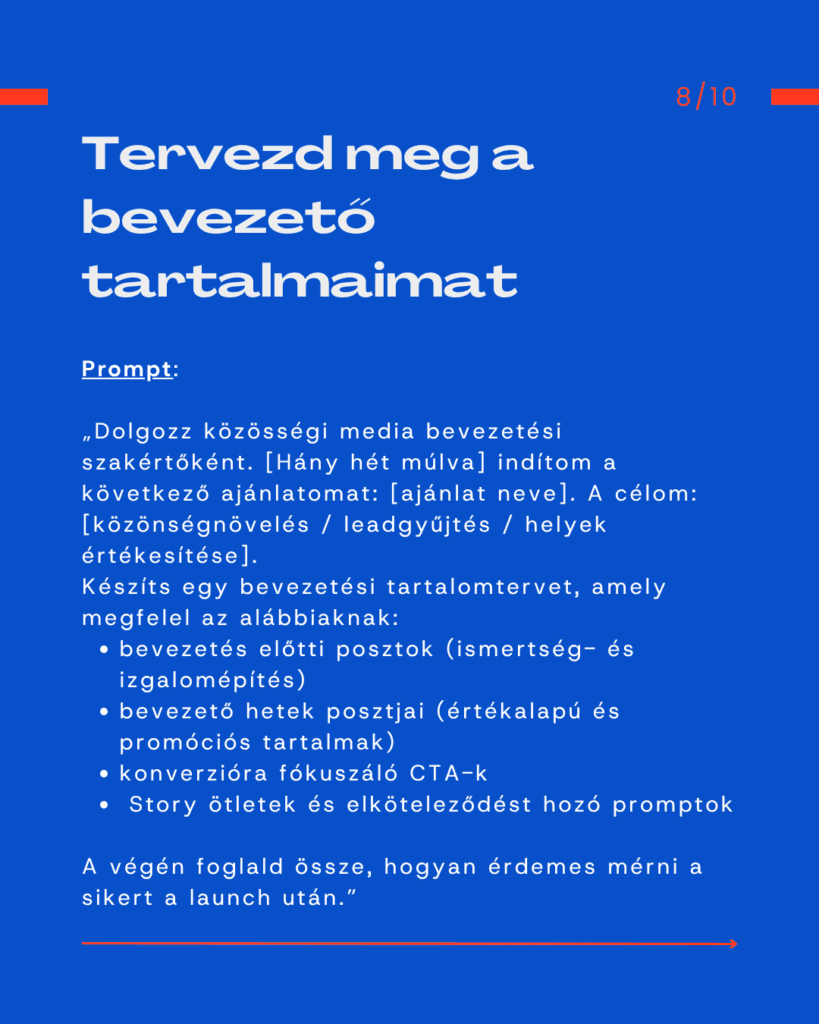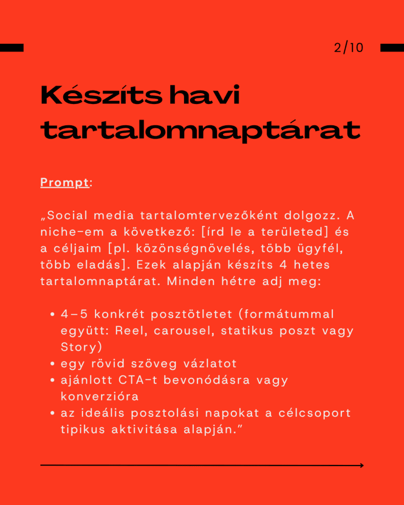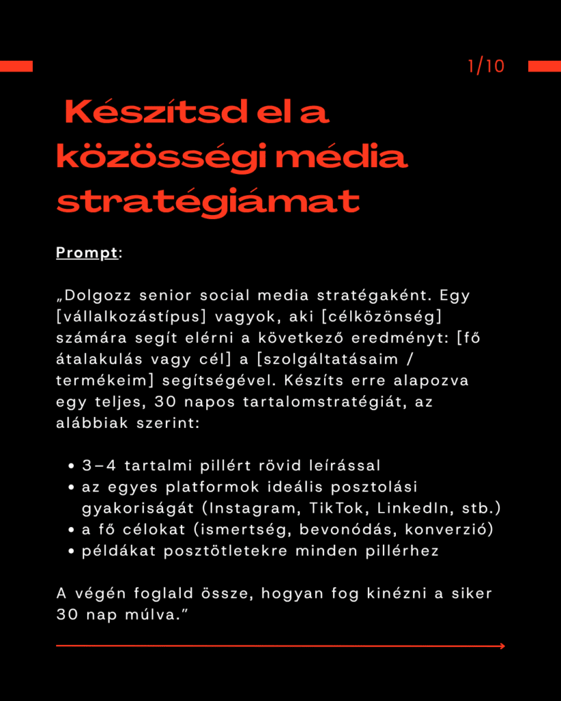 Ez a tíz ChatGPT prompt pontosan ezt a hiányt tölti be. Mindegyik egy-egy pillér, amivel meg lehet építeni egy egész hónapra előre gondolkodó tartalomstratégiát. Segít tisztázni a célokat, meghatározni a platformok ritmusát, és megtalálni azt a hangot, ami valóban hozzád köt. Nem kell hozzá csapat, csak jól megfogalmazott kérdések, és egy MI, ami rendszert csinál abból, amit eddig szétszórtnak éreztél. A végeredmény egy stabil alap, amelyre végre magabiztosan tudsz tartalmat építeni.