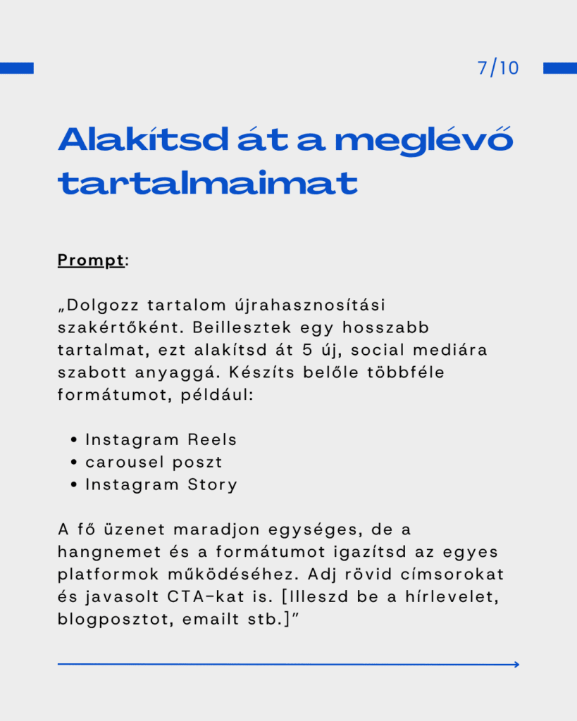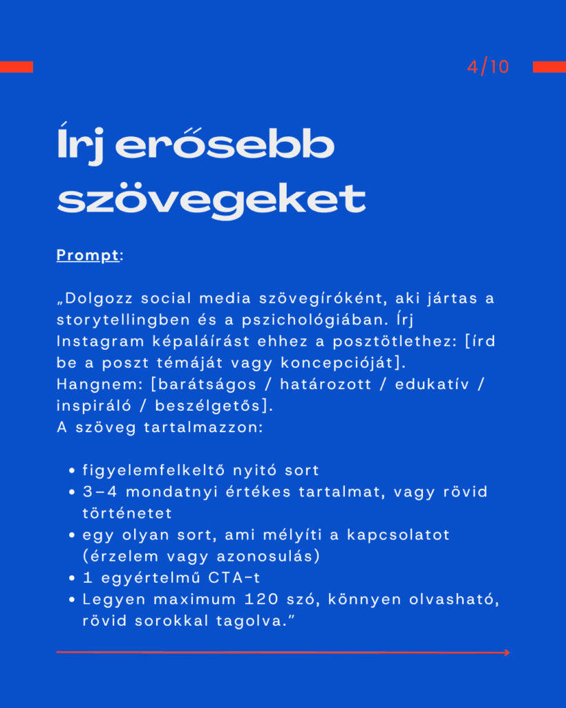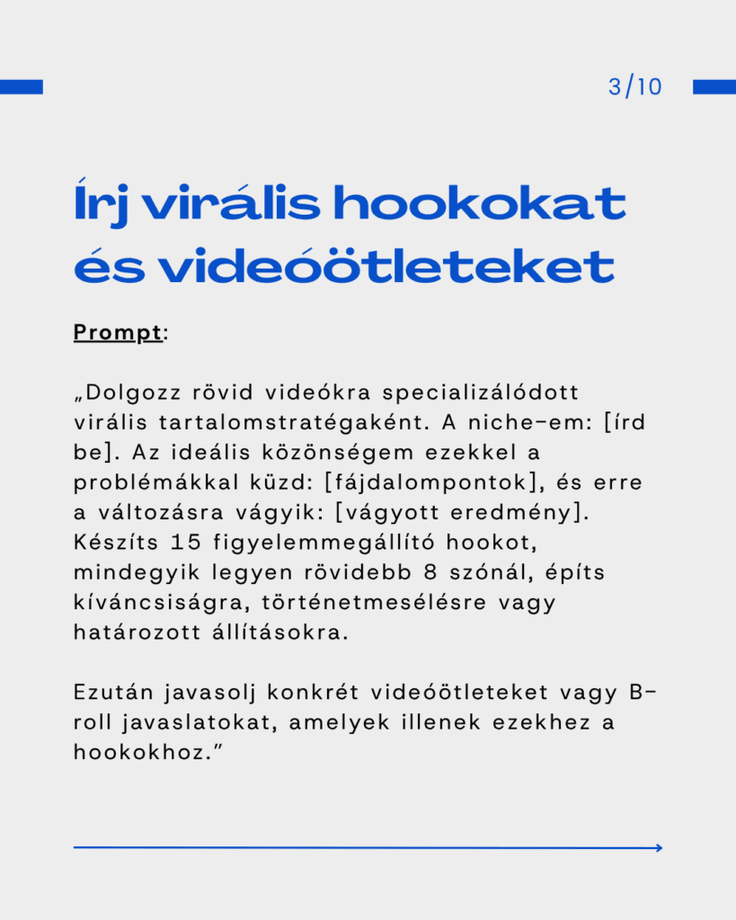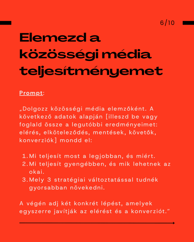 Ezek a promptok úgy támogatják a napi tartalomkészítést, mintha lenne mögötted egy profi közösségi média menedzser, csak épp bármikor kérdezhetsz tőle. Az eredmény: tisztább irány, gyorsabb döntés és sokkal következetesebb jelenlét.