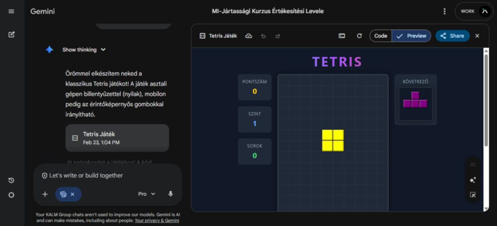 A Gemini Canvas tökéletesen bebizonyította, hogy a mesterséges intelligencia túllépett az egyszerű szövegalkotáson. Ez a felület egy komplett digitális műhely, ahol a nyers ötletek azonnal kézzelfogható és működő termékekké válnak. Aki megtanulja készségszinten használni ezt a környezetet az külsős fejlesztők és drága szoftverek bevonása nélkül is képes lesz megvalósítani a digitális projektjeit.