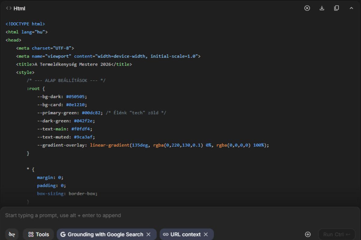 Sokan azt hiszik, hogy a saját weboldalhoz vagy drága fejlesztő, vagy havi előfizetéses honlapépítő kell. Pedig a Google egyik legkevésbé ismert, de legerősebb eszköze, az AI Studio képes arra, hogy percek alatt, ingyen generáljon neked működő weboldalt, képekkel és modern dizájnnal. Nem kell értened a HTML-hez, elég, ha tudsz magyarul utasítást adni.