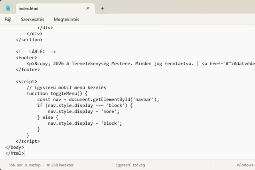 A saját gépeden a Jegyzettömbe másolt és elmentett kód