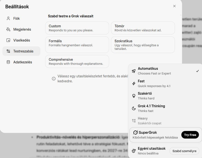 Itt válik el igazán a Grok a versenytársaktól. Míg a ChatGPT igyekszik semleges és politikailag korrekt maradni, a Groknak van véleménye. De ezt először be kell állítanunk.