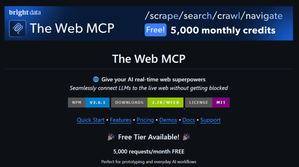 - brightdata/brightdata-mcp: Hatékony mindenes szerver a nyilvános webes hozzáféréshez.