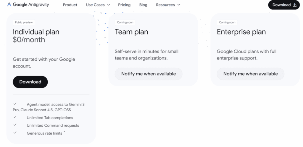 Jelenleg ingyenesen használható, bár vannak használati korlátai. Olyan, mint a fizetős Cursor, de beépített böngészőfunkciókkal és egyéb extrákkal rendelkezik.