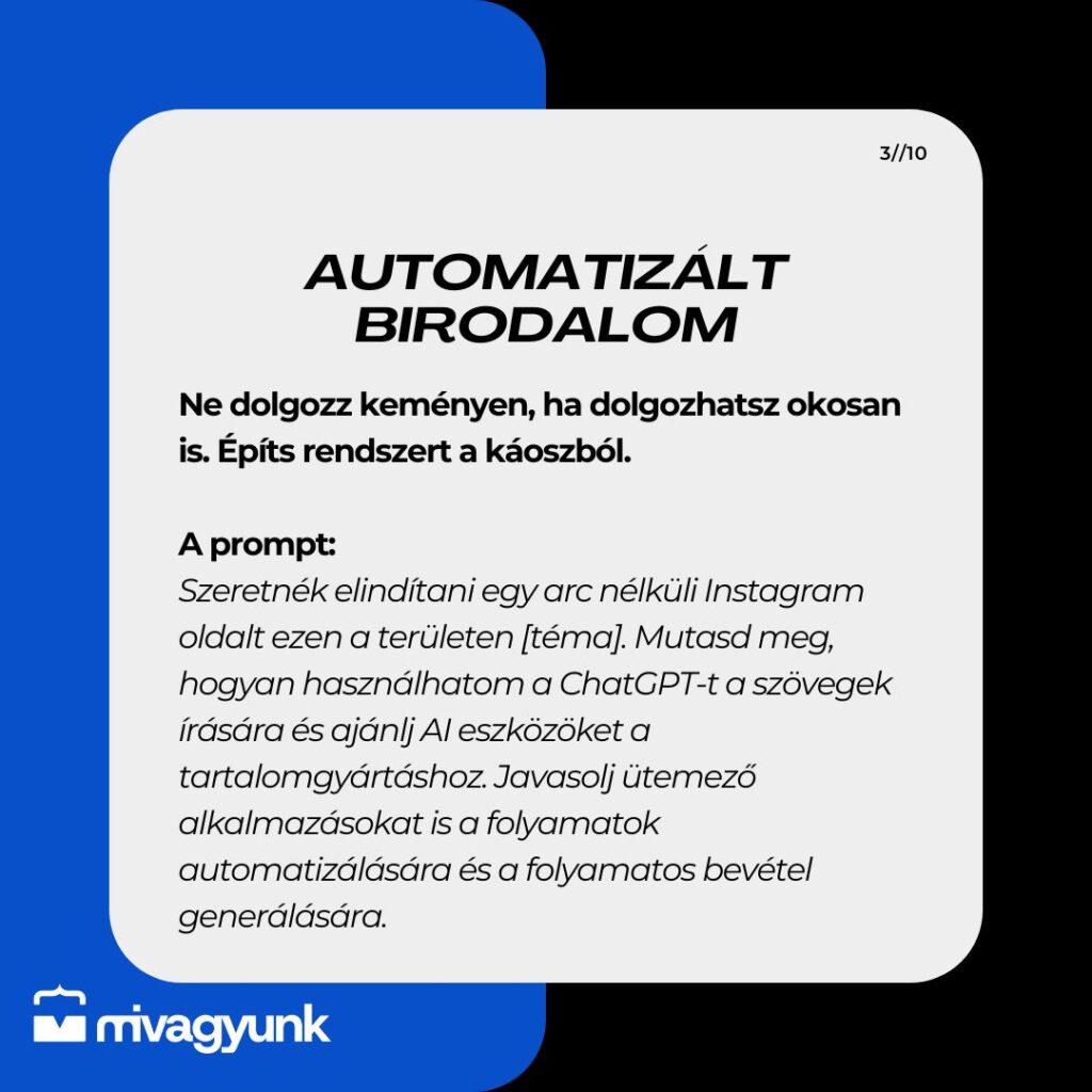 Egy ilyen oldal felépítése viszont rengeteg munka lenne egyedül. Írni kell, tervezni és stratégiát gyártani. Itt jön a képbe a mesterséges intelligencia. Ha jól használod, akkor ő lesz a szövegíród és a marketingesed egy személyben. Neked csak az irányt kell mutatnod.
