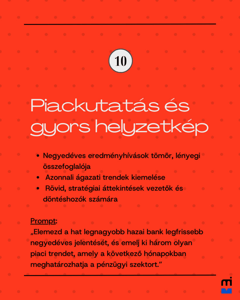 A következő tíz pénzügyi MI prompt ehhez ad eszközt. Mindegyik más és más területet érint: kockázatot, befektetést, előrejelzést, vagyonkezelést vagy épp dokumentumelemzést. Ha jól kérdezel, a rendszer pontos képet ad, neked pedig könnyebb lesz a következő döntést meghozni.