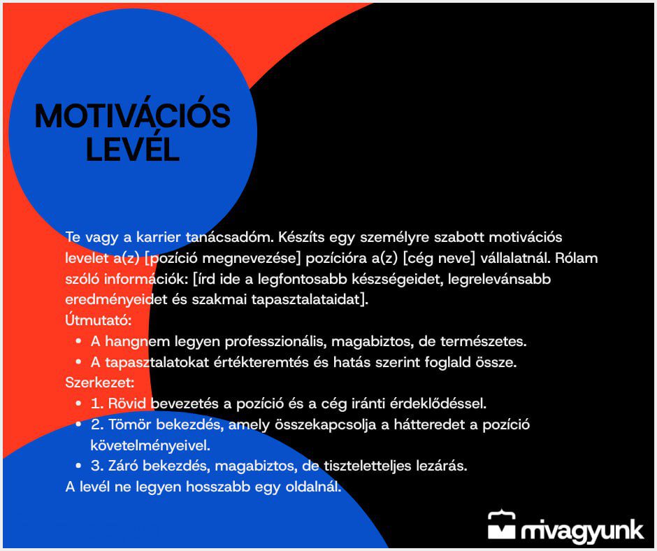 1. Álláspályázatok és karrier, „Személyre szabott motivációs levél” prompt