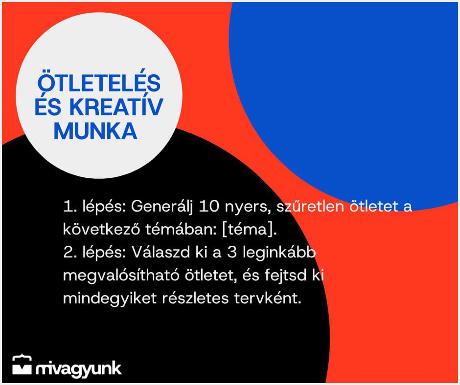 Az ötletelés akkor a leghatékonyabb, ha előbb sok nyers ötletet gyűjtesz (divergens), majd a legjobbakat kidolgozod (konvergens gondolkodás).